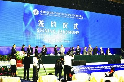 昨日,中部六省与海外多国签约28个优质产能“走出去”项目,签约金额79.33亿美元。 记者苗剑 摄