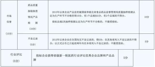 在湖北公示的经济技术标评价指标的相关信息中,包括取消电子监管码赋分,药品质量抽验抽查情况、不良记录、行业评比等,这些都决定了投标产品能否加分,或者是否处以扣分处理。