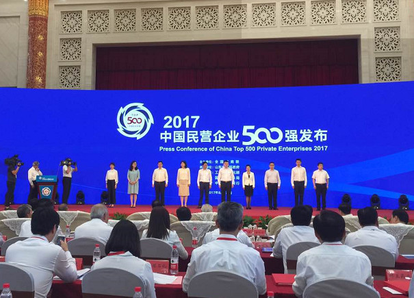 8月24日,由全国工商联主办,工信部、国家工商总局支持的2017中国民营企业500强发布会在济南召开。华为投资控股有限公司、苏宁控股集团、山东魏桥创业集团有限公司位列2017中国民营企业500强前三名。