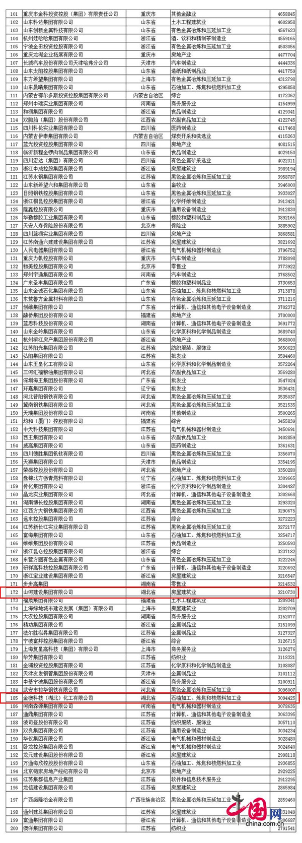 中国民营企业500强榜单发布 19家鄂企上榜