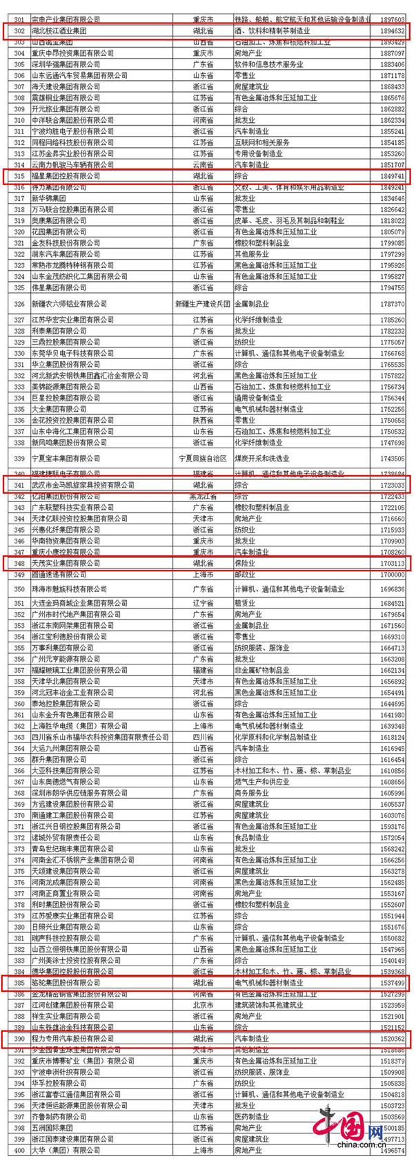 湖北省入围2017中国民营企业500强名单: