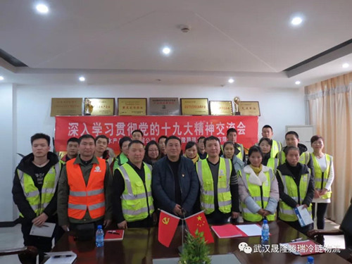 为深入学习宣传贯彻党的十九大精神,充分发挥党员的带头示范作用,12月29日,中共武汉晟隆腾瑞冷链物流有限公司党支部在公司会议室举办了学习贯彻党的十九大精神交流会。23名来自公司党员和积极分子代表参加了此次会议,特邀代表中农发核心成员企业武汉梁子湖水产品加工有限公司总经理汪胜书、党建工作部负责人杨明明列席了会议,公司党支部书记陈恩华、董事长何鑫出席了会议并做了动员讲话。