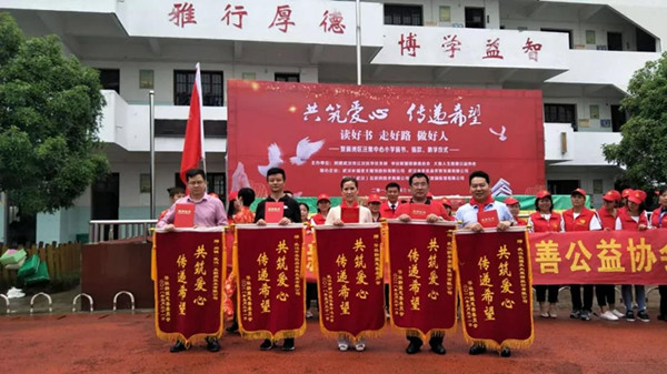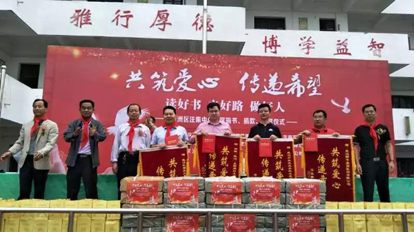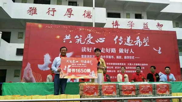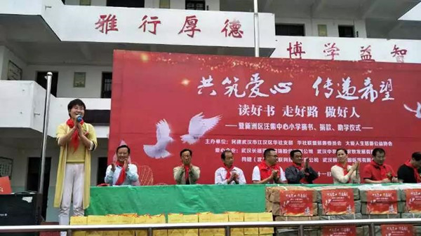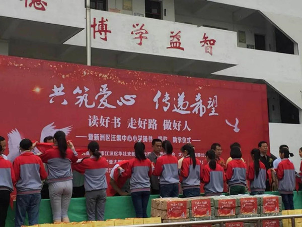 5月31日 上午,在第69个儿童节到来之际,华社联盟慈善委员会和新洲大爱人生公益协会共同举办的《共筑爱心、传递希望》一一读好书、走好路、做好人大型助学捐书捐款公益活动在新洲区汪集镇中心小学广场隆重举办。