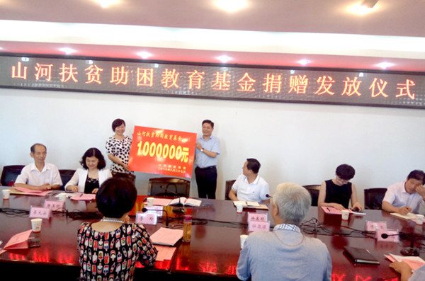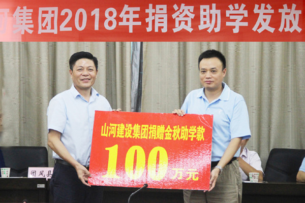 8月27日,2018年“山河扶贫助学金”发放活动在黄冈市职工活动中心举行,山河集团向该市总工会捐资100万元,帮助219名贫困学子圆大学梦。