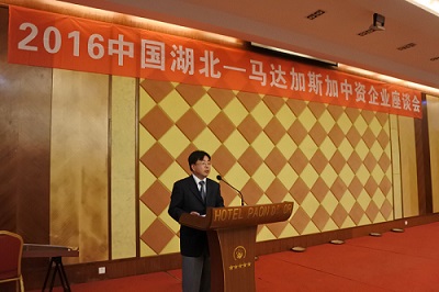 2016年12月3日,由湖北省人民政府主办、中国贸促会湖北省分会和马达加斯加中资企业协会共同承办的中国湖北-马达加斯加中资企业座谈会在塔那那利佛成功召开。中国驻马达加斯加大使馆史宇立代办、经参处梁少敏参赞、马达加斯加参议院副参议长库卢·罗歇、马达加斯加经济发展局代表拉库图芒加女士、马达加斯加中资企业协会刘杰会长等共约150人出席会议。